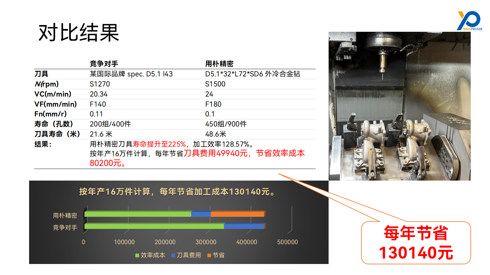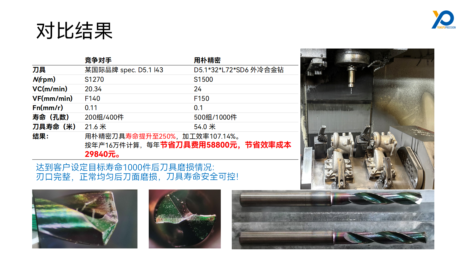 2刃钻方案凭借稳定的加工性能,帮助客户实现年成本节省88,640元(对应年加工成本降低12%);
