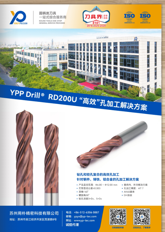 用朴精密 YPP Drill® RD200U 钻铰刀,以一刀代两刀的创新设计,帮助您实现高效、精密、低成本的孔加工。无论是钢件、铸铁还是铝合金,RD200U 都能带来显著的效率与寿命提升。