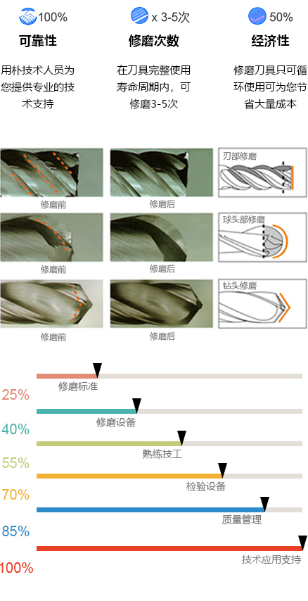 我们的技术人员将按照应用情况、 刀具厂家制定相适应的修磨标准