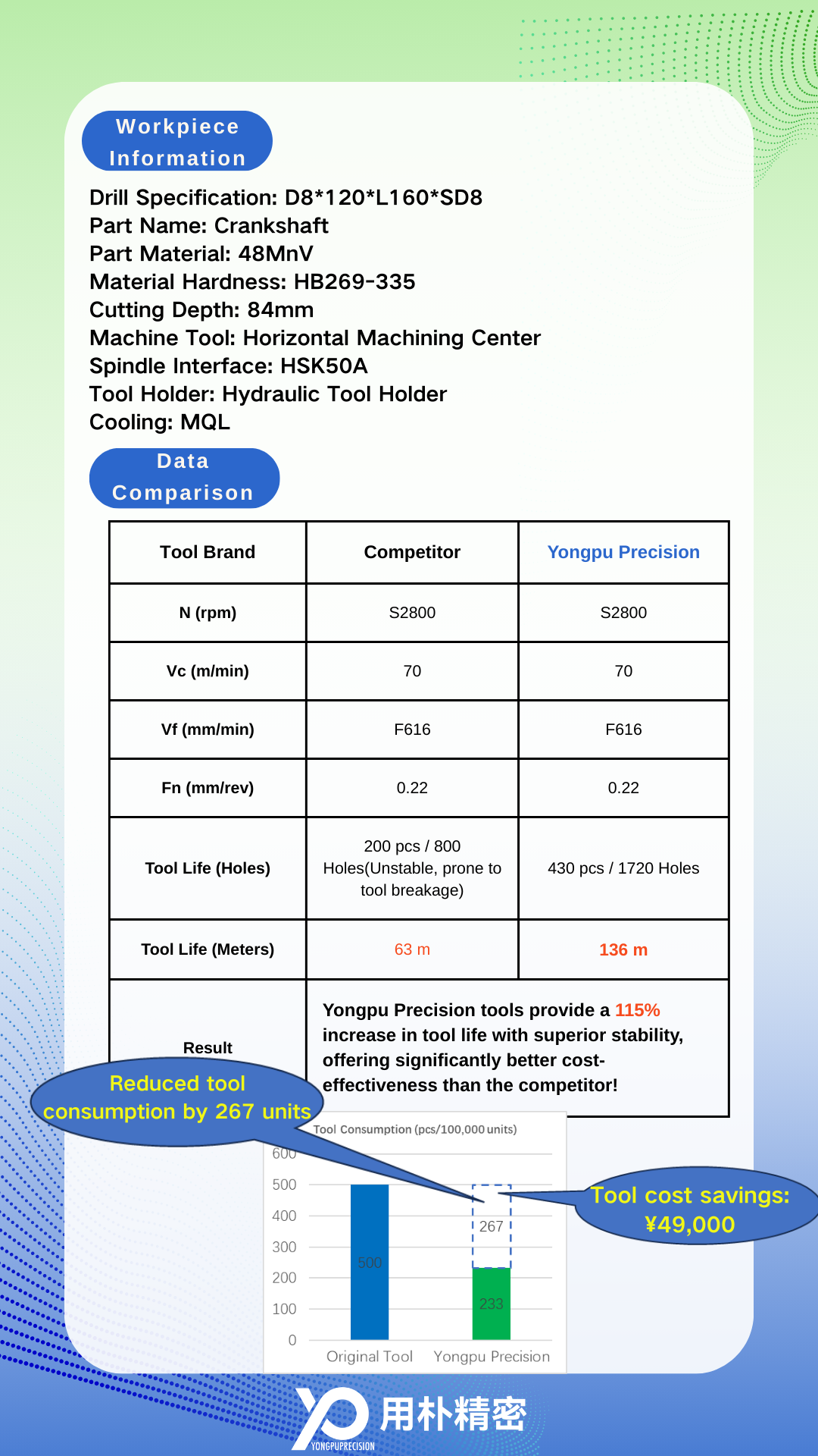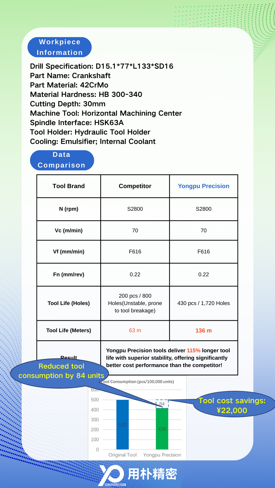 Crankshafts are typically manufactured from high-strength forged steel or ductile iron. While these materials offer excellent performance, their high hardness and toughness make them difficult to machine. This accelerates tool wear and demands tools with exceptional hardness, red hardness, and wear resistance, significantly increasing tooling costs.